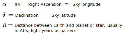 Rn = Distance of Bodyn from Sun or Earth in any convenient units